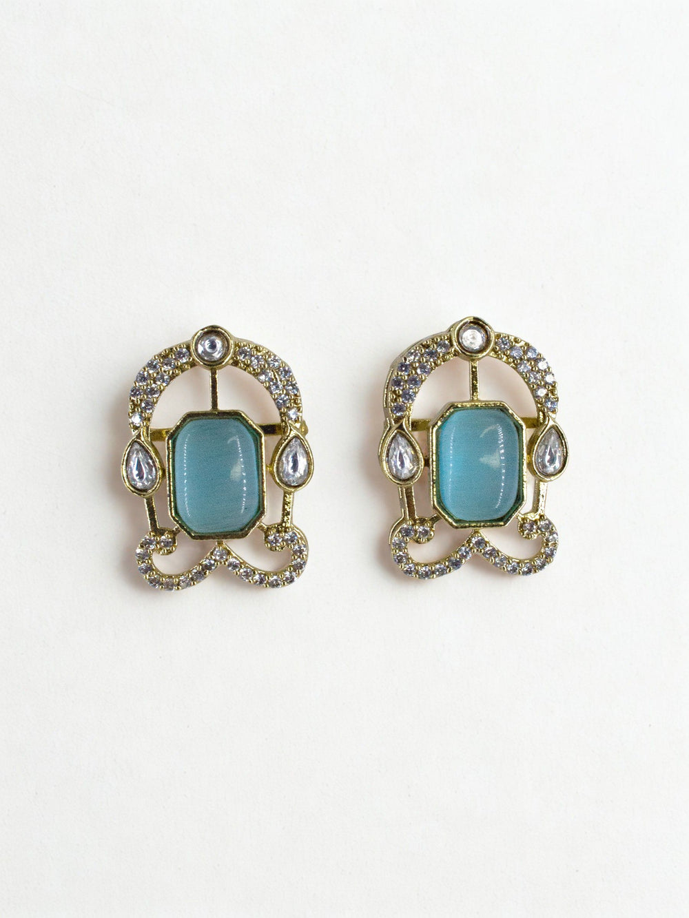Soft, luminous, and effortlessly modern, the Aqua Gleam Studs pair a light sky-blue stone with a refined Art Deco–inspired zirconia setting. Handcrafted in recycled metal and finished with radiant 18K gold plating, the earrings balance delicate color with architectural clarity. Petite yet expressive, they carry a quiet shimmer — airy, minimal, and perfectly suited for everyday elegance. A subtle touch of radiance to uplift any look.