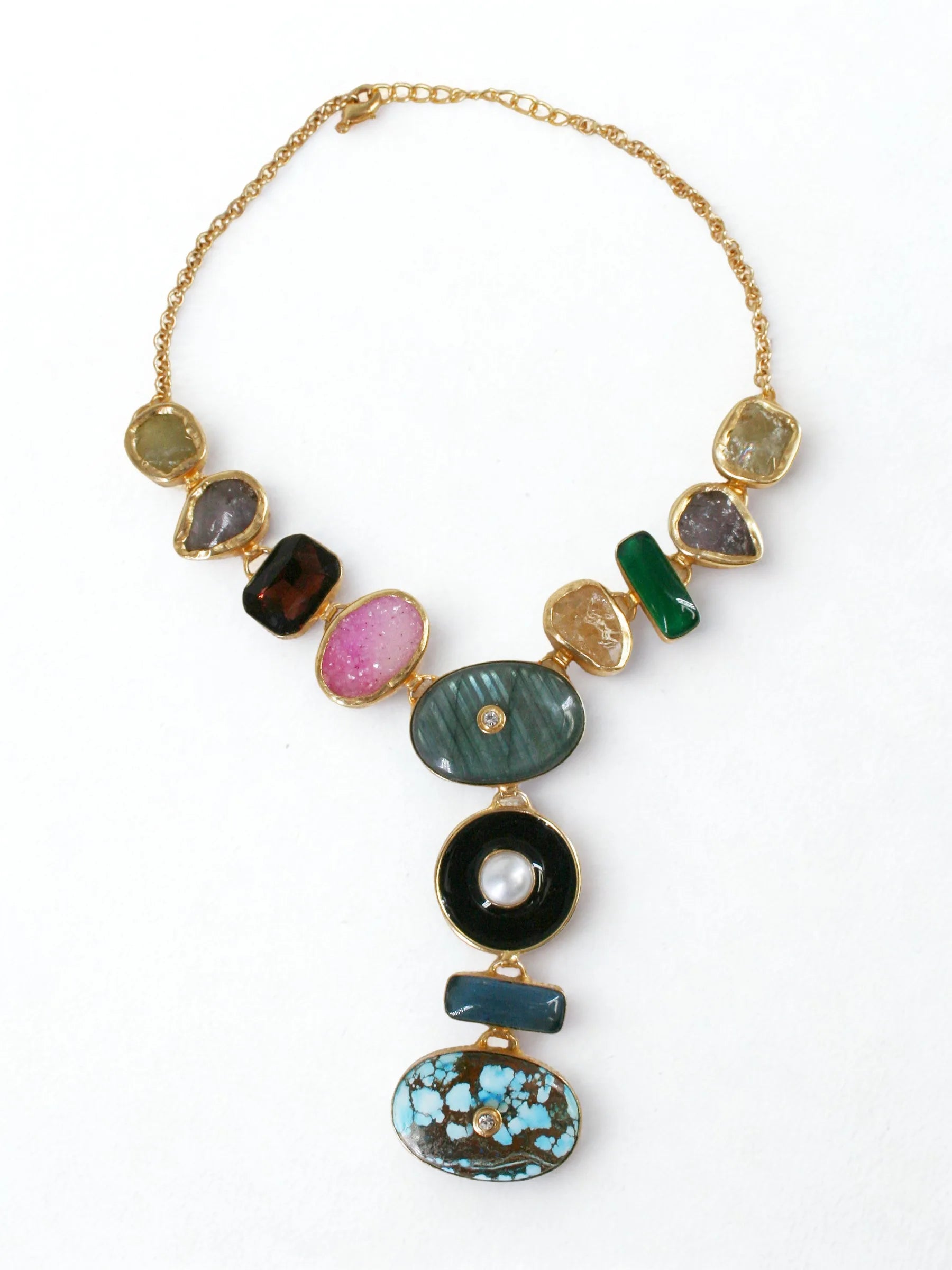 Material - Raw stones, Brass Alloy, 18kt Gold plating,