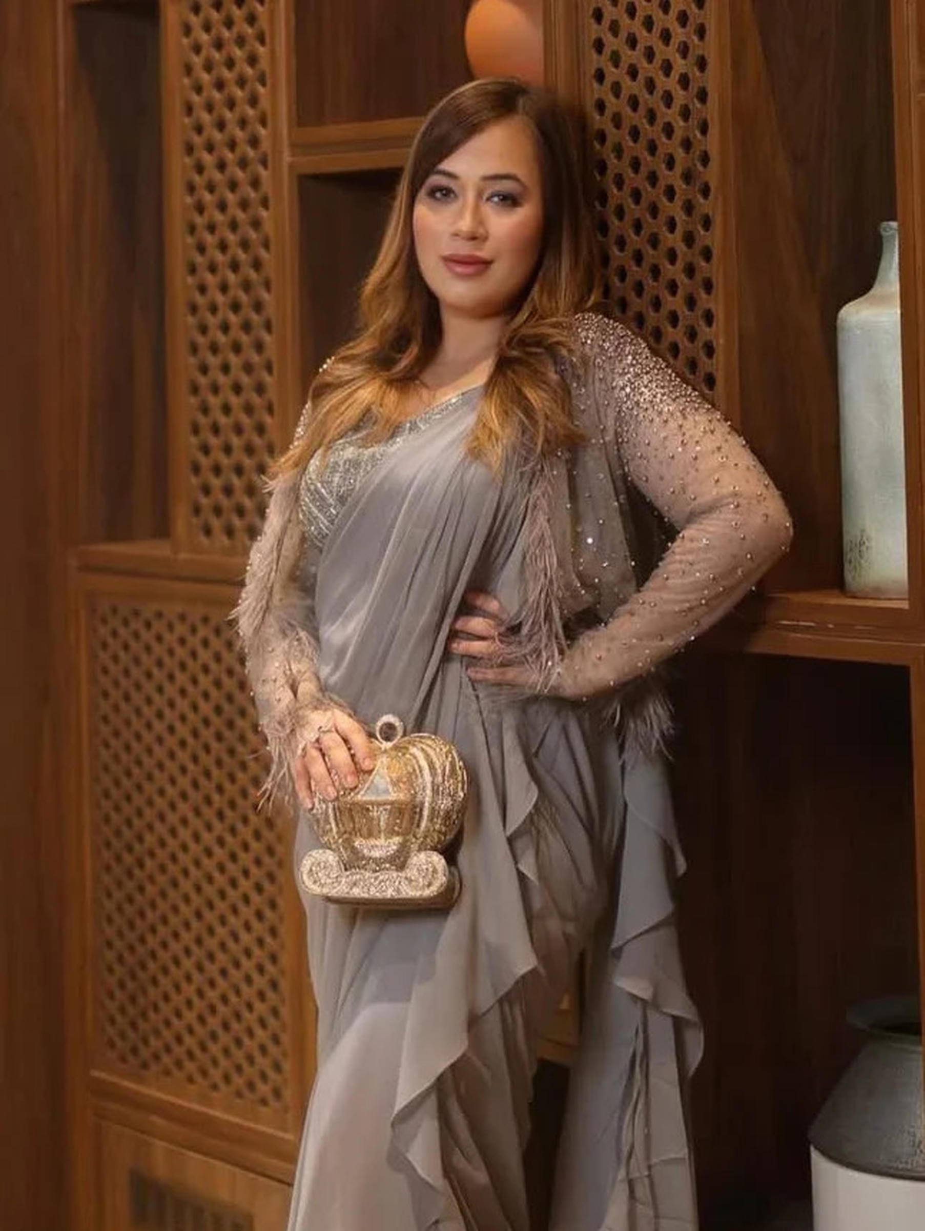 Carry a piece of art with you wherever you go, this bag is a testament to the beauty of handcrafted luxury. Let the intricate beadwork spark joy and wonder, elevating your style to a realm of fantasy and sophistication. Experience the magic of fairyland fantasies with our hand-beaded collection, where every bead is a shimmering thread connecting you to a world of timeless elegance and enchantment. Each bag is adorned with thousands of beads in shades of gold & silver, meticulously crafted to create a mesmerizing look that is as dazzling as it is enchanting. Handcrafted with beads & zardozi in a striking gold hue, the piece measures 19x25x10 cm, offering a structured yet practical silhouette, designed as a minaudière that effortlessly complements traditional attire as well as contemporary evening wear. Perfect for weddings, festive celebrations, and luxury soirées, it elevates every occasion with its opulent presence. Part of the Whispers of Versallis collection, it represents a seamless blend of heritage artistry and modern elegance, brought to life by the vision of Puneet Gupta Luxury.