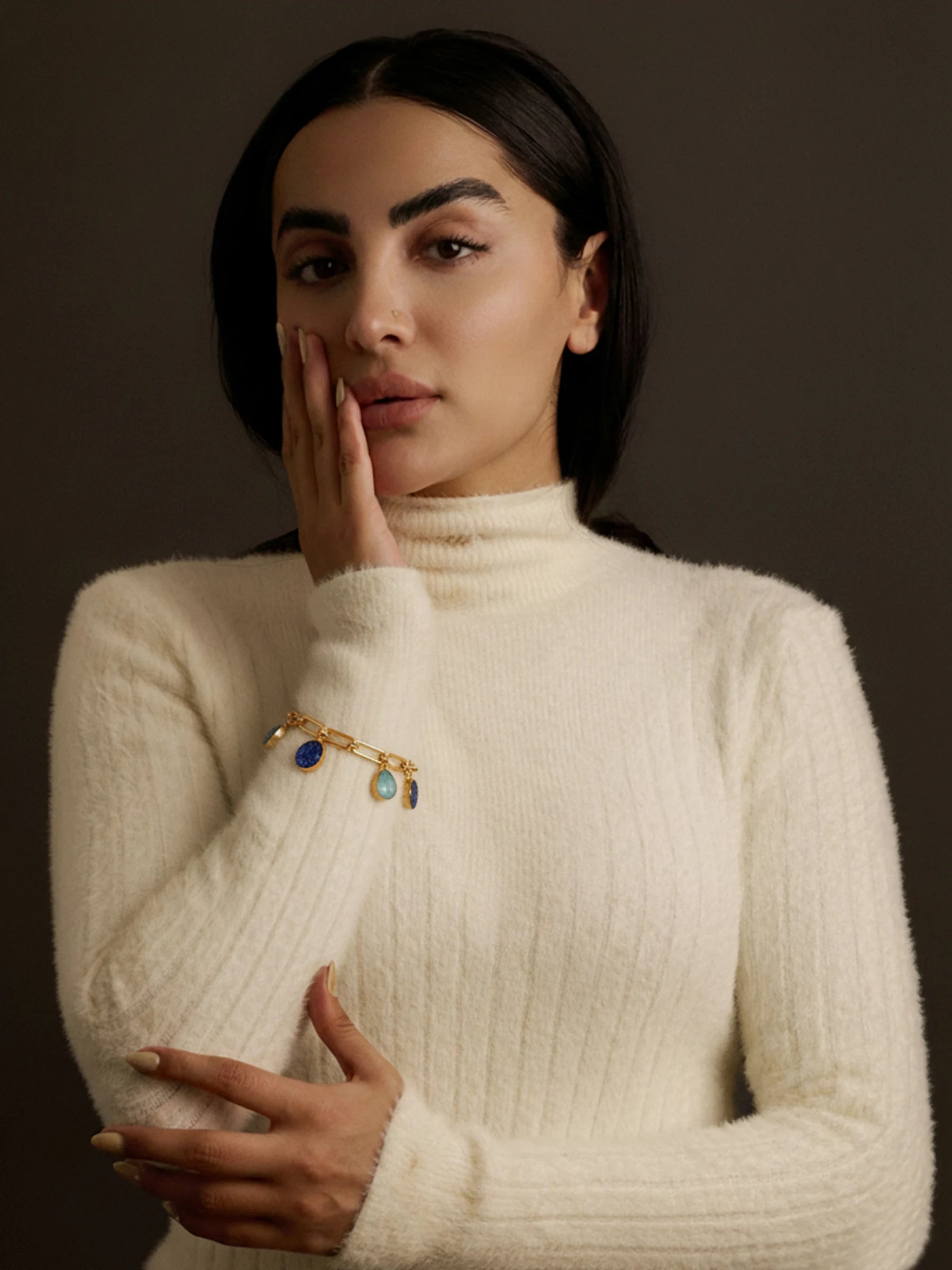 In Deco Luméaura, sculptural lines, human touch, and raw natural stones converge to create jewellery with palpable emotion. Each piece is handcrafted in recycled brass with a radiant gold finish, while the stones — uncut, unpolished, and chosen for their natural aura — infuse character and grounding energy.