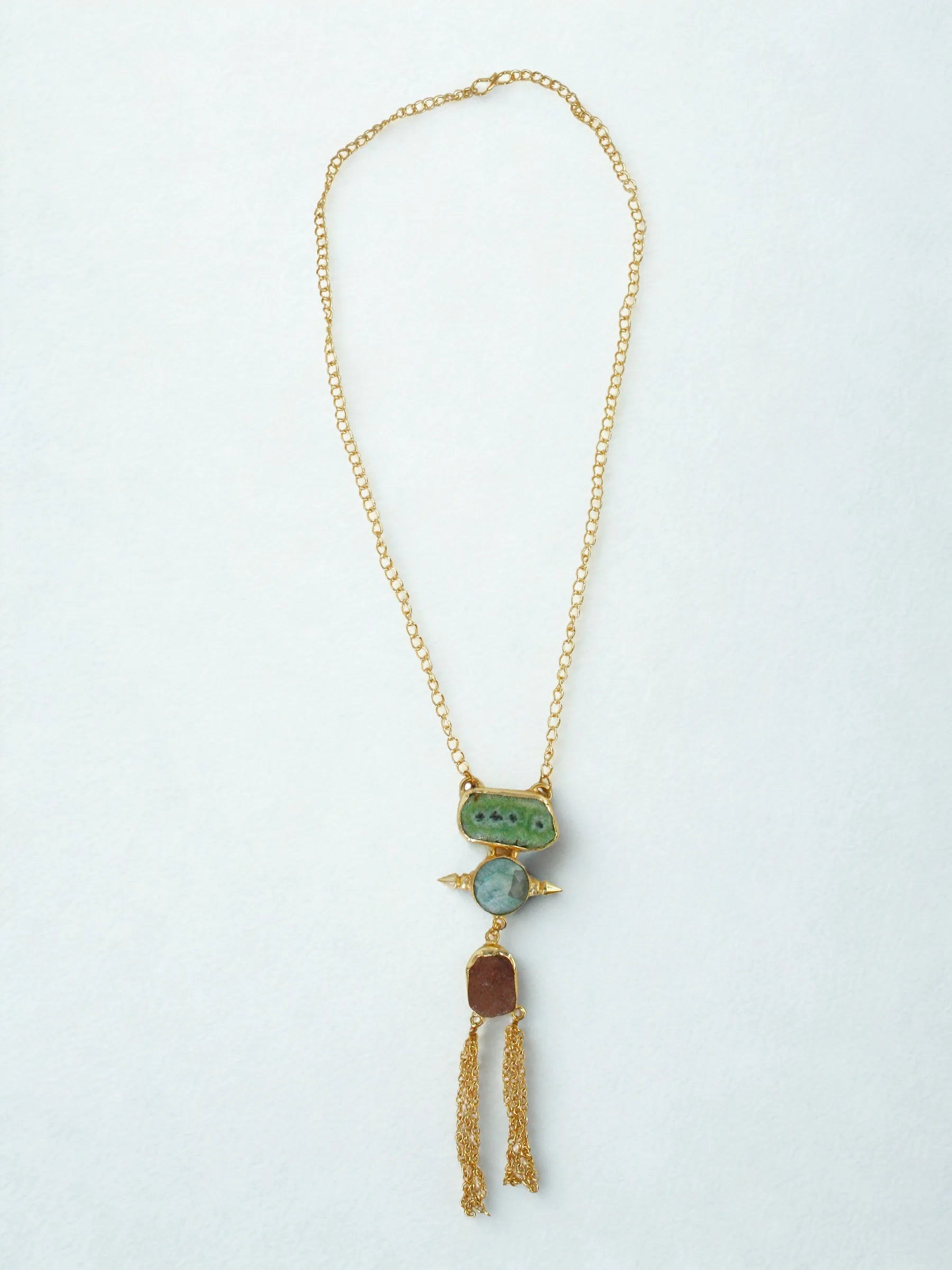 Material - Raw stones, Brass Alloy, 18kt Gold plating,