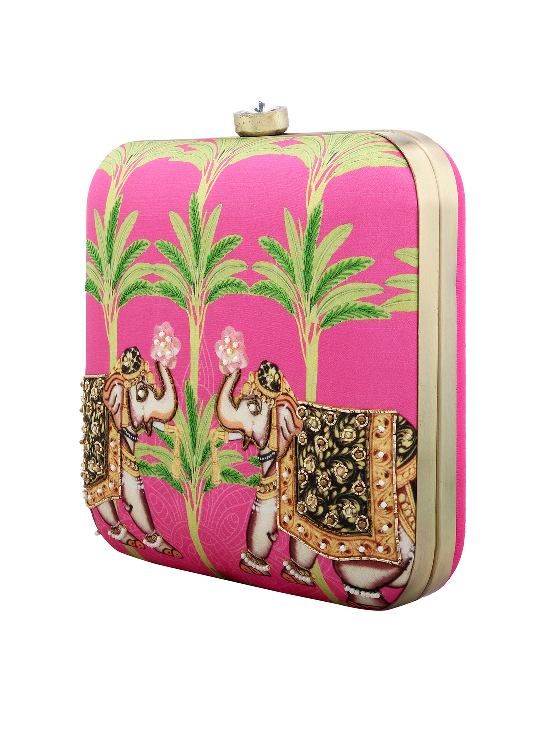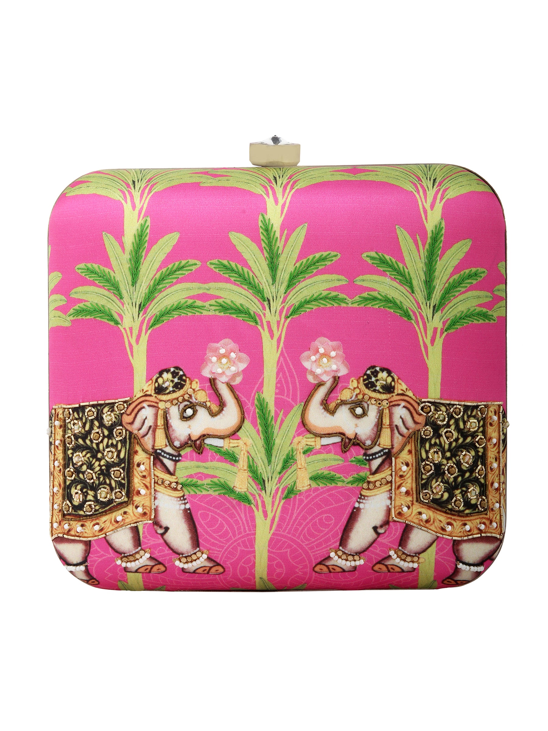 Every Hathi Bageecha Clutch is a handcrafted celebration of India’s royal artistry. Embellished with heritage-inspired motifs and intricate embroidery, it brings timeless sophistication to your festive wardrobe. Designed for wedding soirées and couture ensembles, it reflects the signature finesse of Puneet Gupta Luxury.