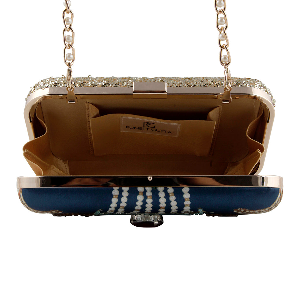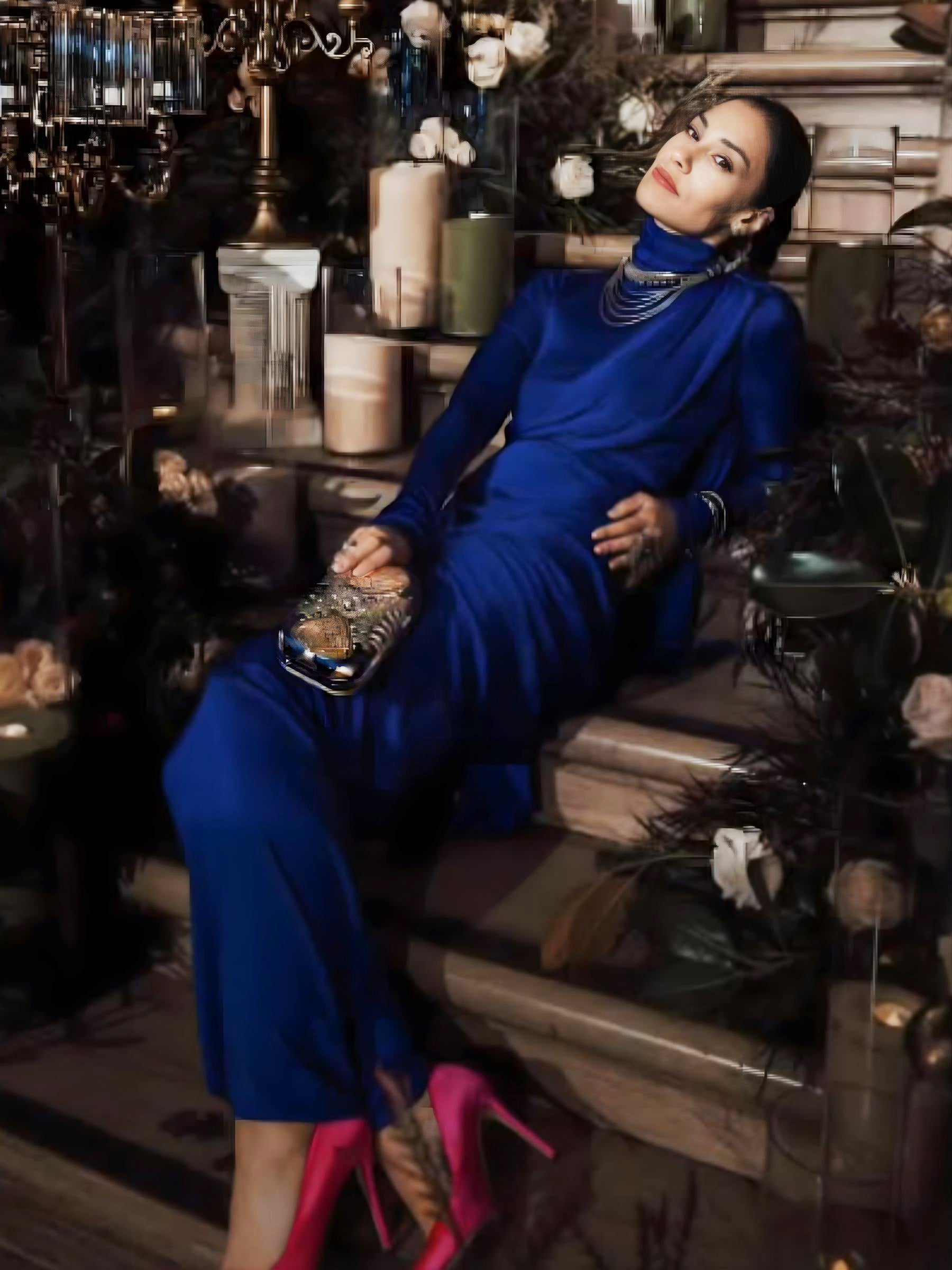 JANINA GAVANKAR | American Actress Wearing Ultramarine Royale Clutch Bag