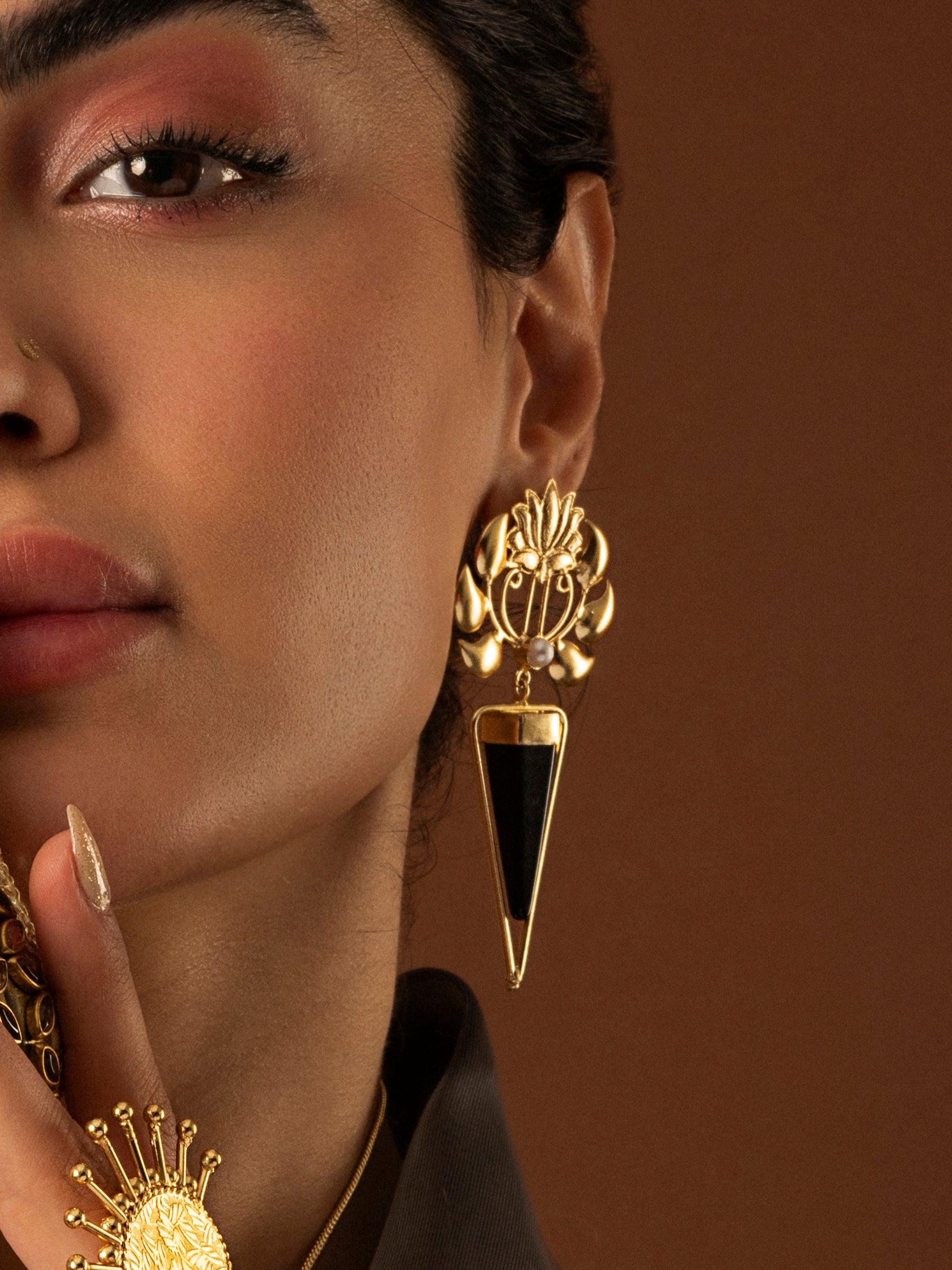Jewellery is born from renewal — recycled brass and mixed metals, reshaped by skilled artisans into adornments where heritage and contemporary design meet. Stones are handpicked, responsibly sourced, and often repurposed, ensuring beauty without hidden scars — each plated in 18K gold to make them truly timeless and functional.