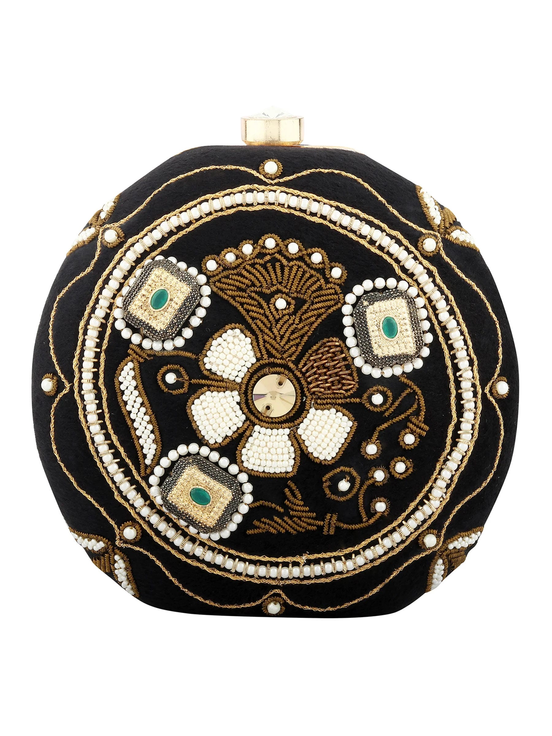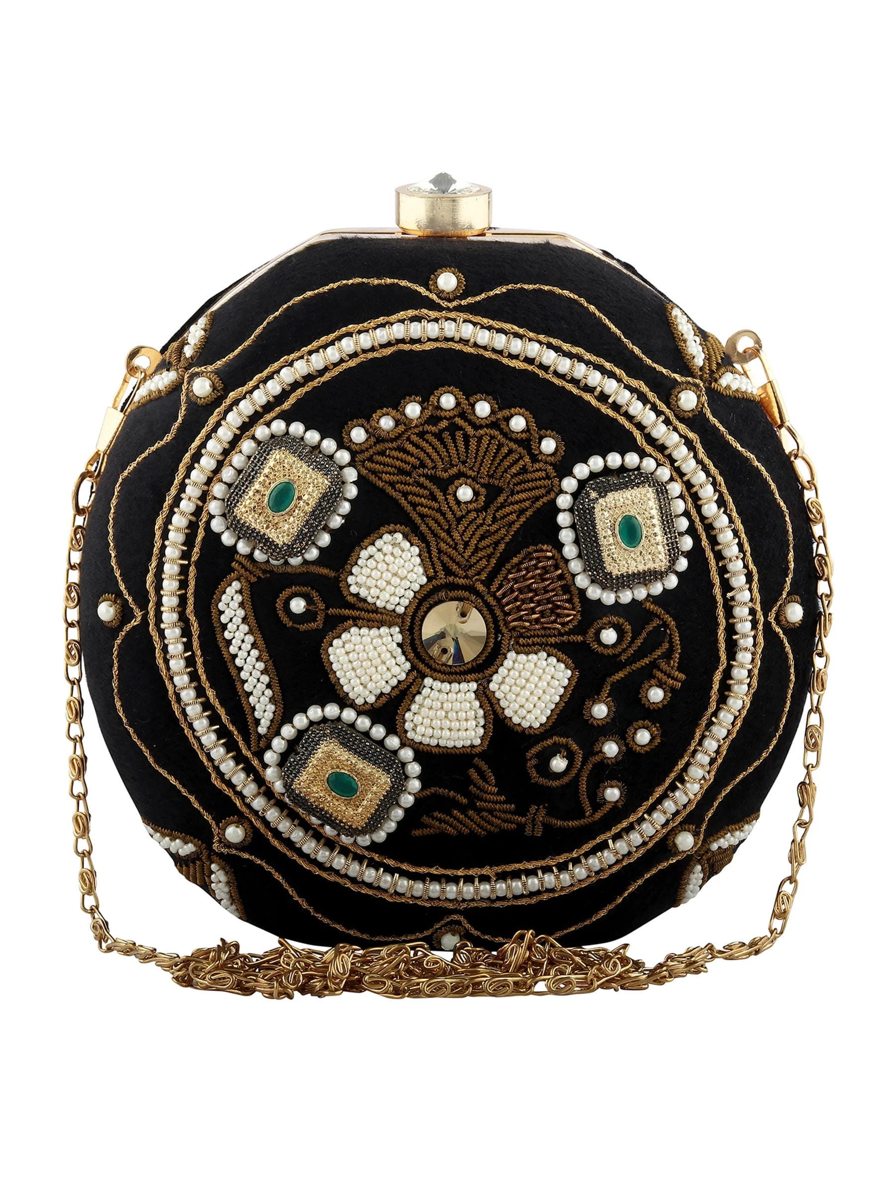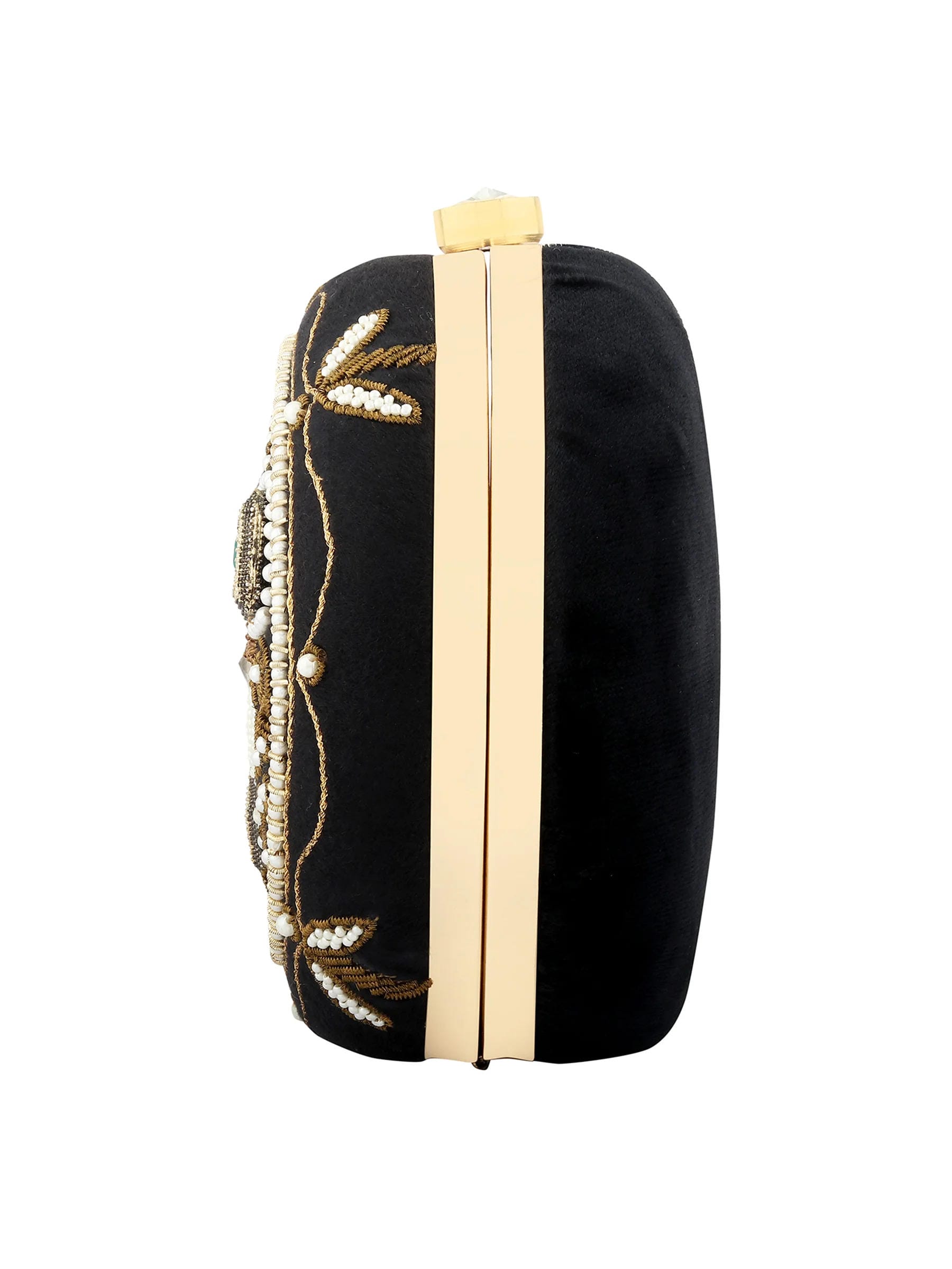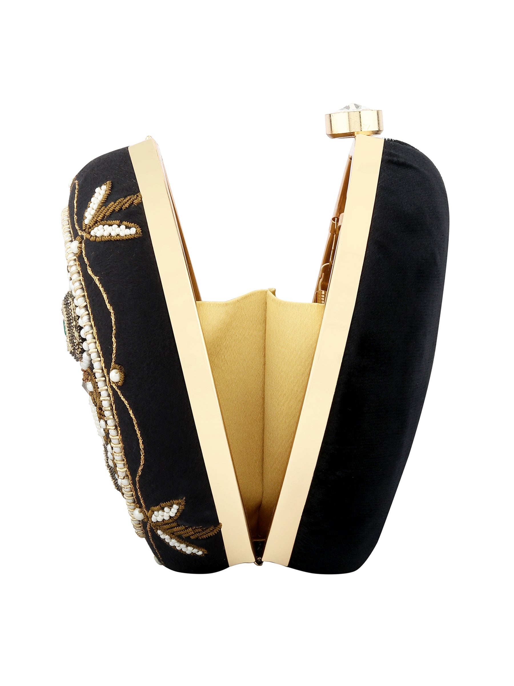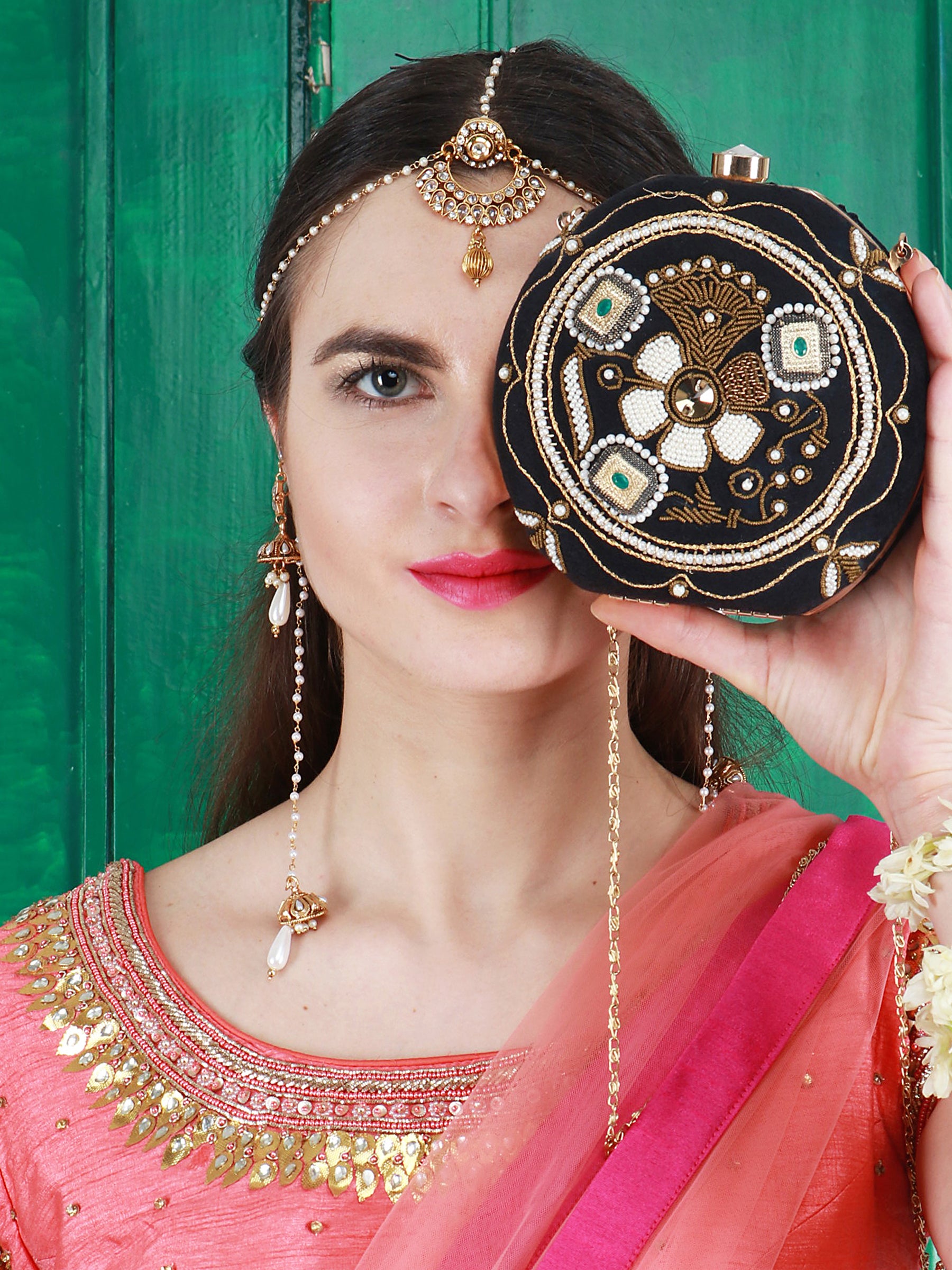 An exquisite blend of artistry and regal elegance, the Makta Kari Clutch captures the splendor of the royal era in every stitch. Crafted using traditional techniques with modern finesse, it brings together pearls, precious accents, and ornate zari detailing. Designed for grand celebrations and statement occasions, this clutch reflects Puneet Gupta’s devotion to creating heirloom pieces that transcend trends and time.