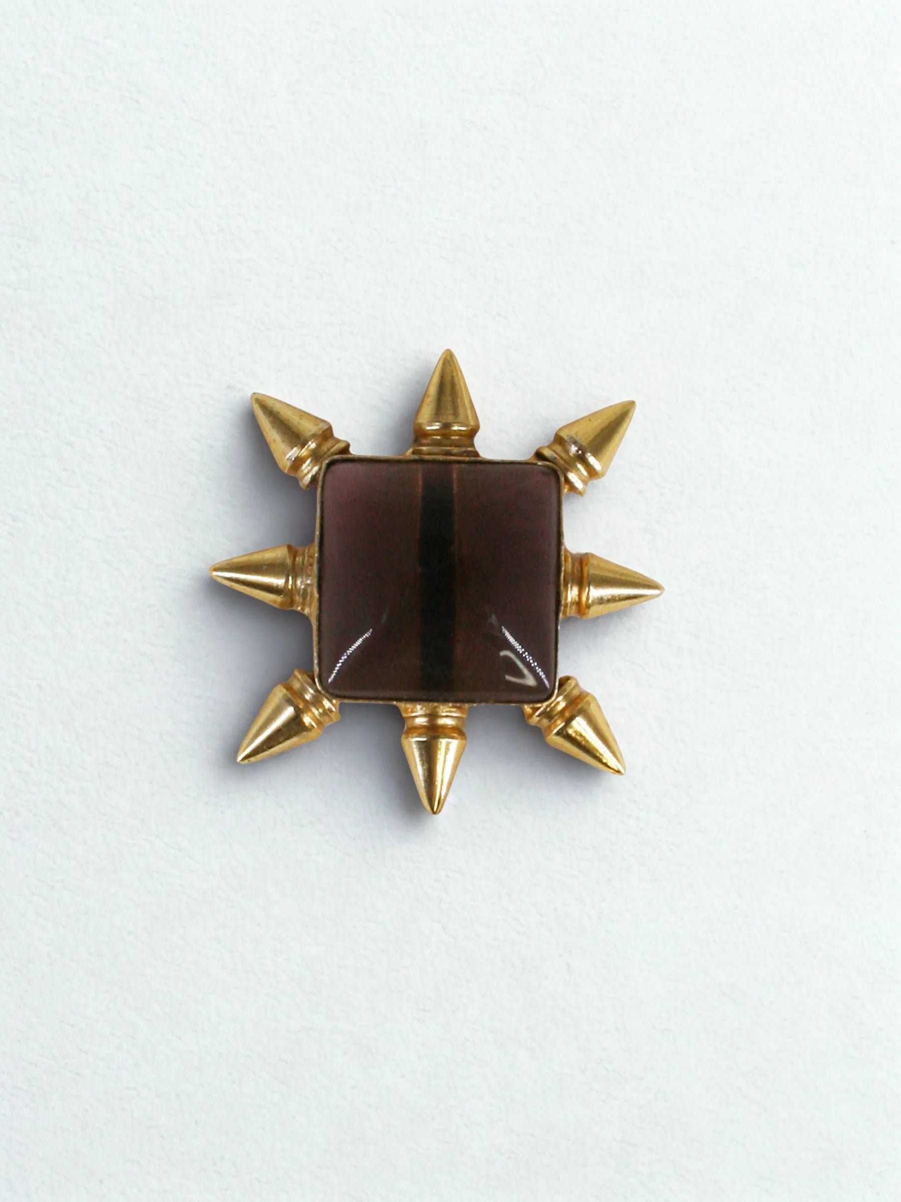 Handcrafted in recycled brass and finished with luminous 18K gold plating, the Mira Beam Ring centers a translucent amethyst-toned square stone framed by radiant metal spikes that burst outward like captured light. Sleek, sculptural, and quietly celestial, it brings a touch of cosmic glow to the hand. A modern heirloom for those who seek elegance with an edge.