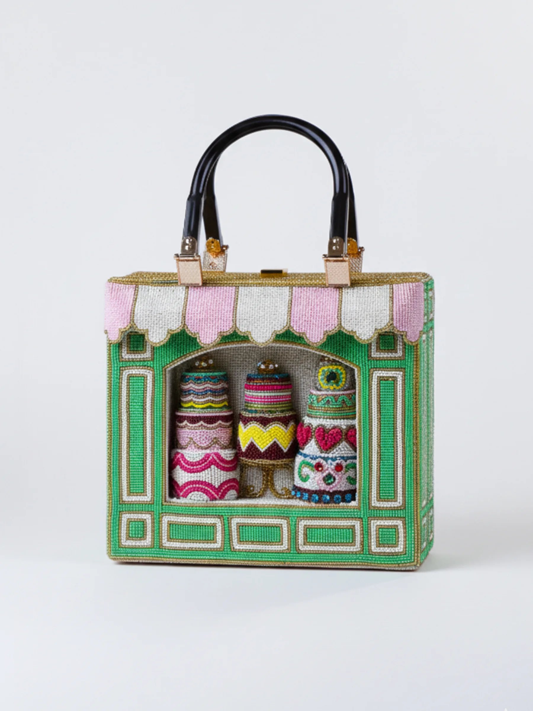 For those who adore the cozy charm of a French bakery, our French cake shop shape bag is a delightful treat, featuring quaint details that evoke the aroma of freshly baked pastries and the warmth of a Parisian café. It is not just a fashion accessory but a whimsical embodiment of dreams and fantasies. Let your style reflect the magic of French bakeries and fairylands with our uniquely shaped bags, where every bag is a story waiting to be told. Handcrafted with beads in a striking green hue, the piece measures 24x20x9 cm, offering a structured yet practical silhouette, designed as a minaudière that effortlessly complements traditional attire as well as contemporary evening wear. Perfect for weddings, festive celebrations, and luxury soirées, it elevates every occasion with its opulent presence. Part of the Whispers of Versallis collection, it represents a seamless blend of heritage artistry and modern elegance, brought to life by the vision of Puneet Gupta Luxury.