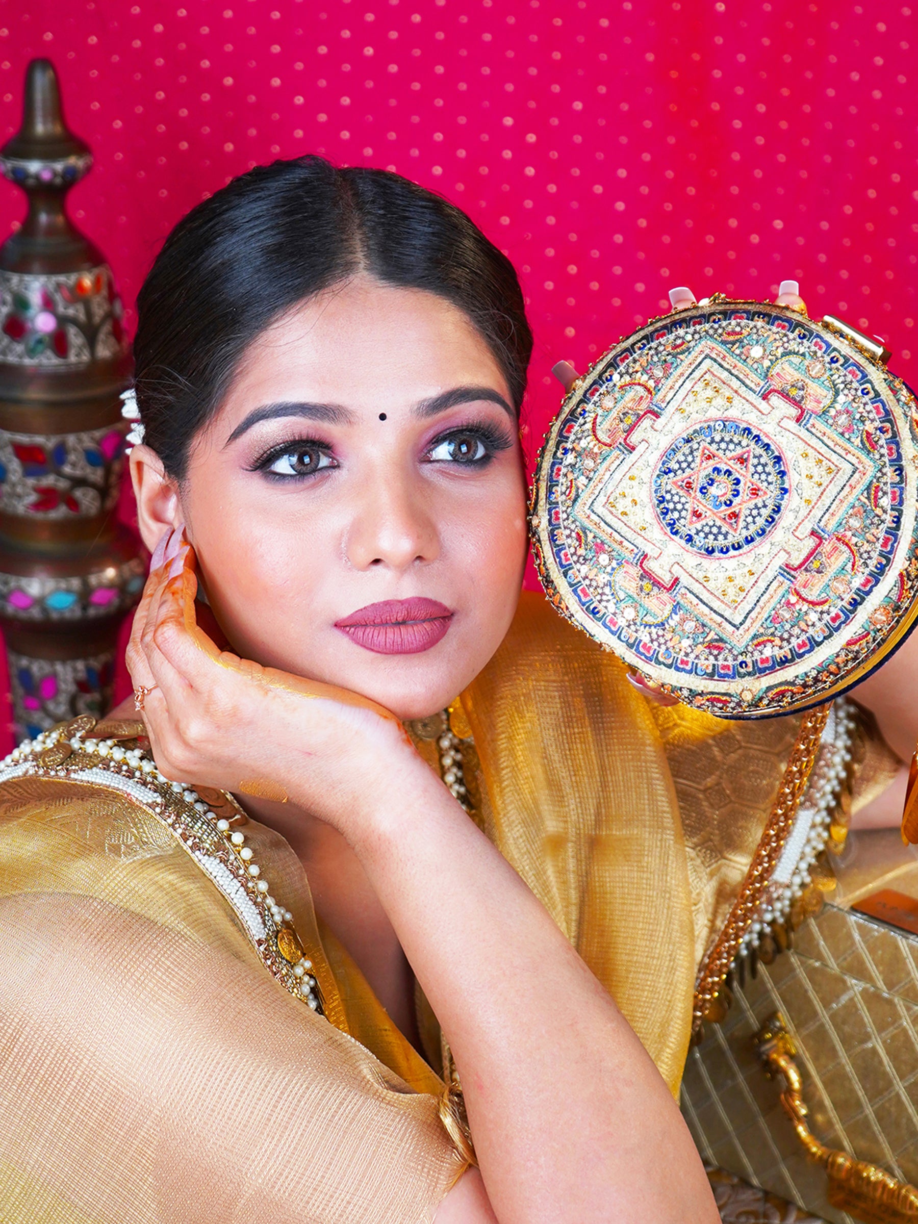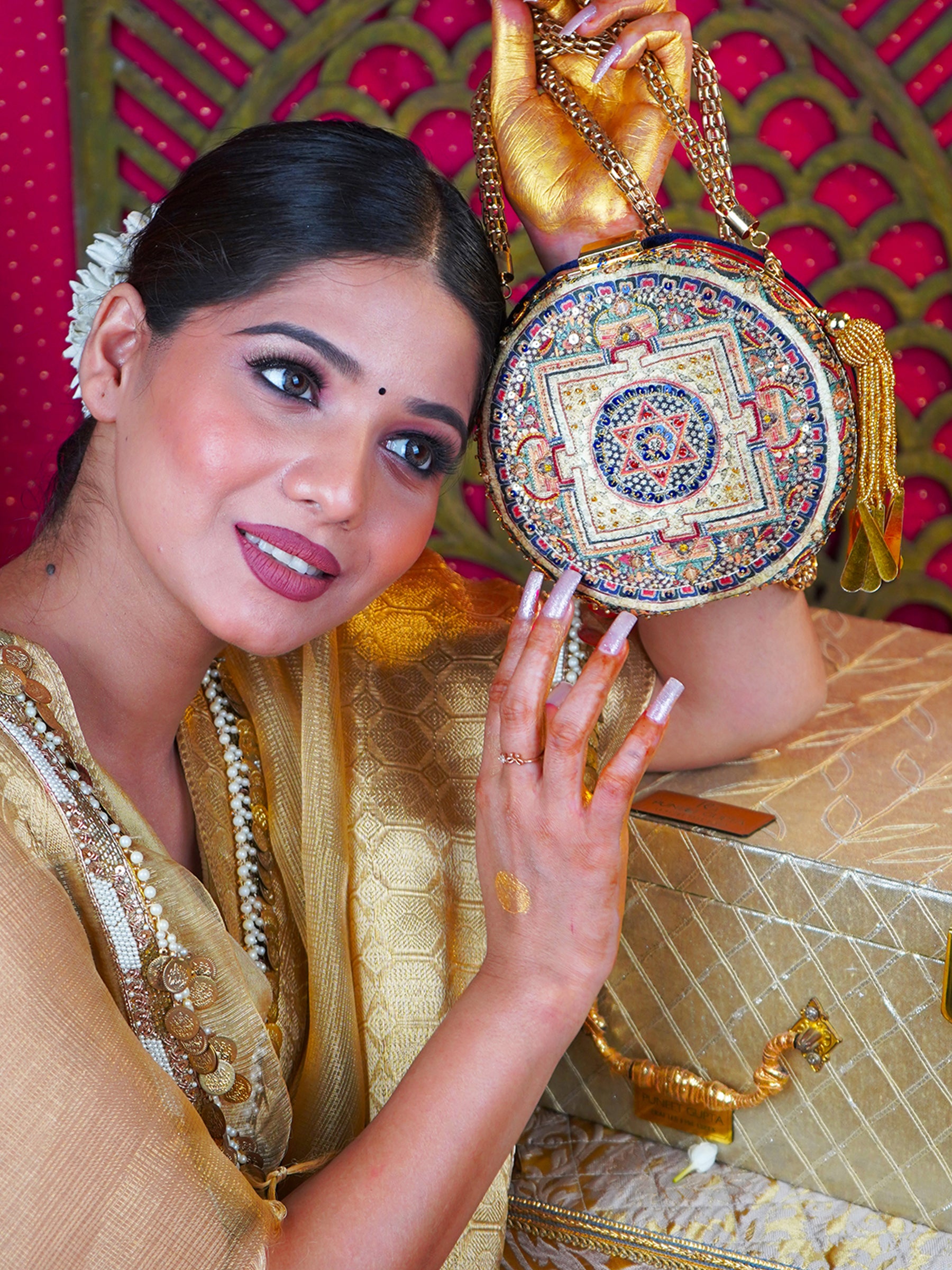 Be it a traditional Indian ensemble or an Indo-western outfit, this clutch is the perfect companion for the festive and wedding season. It effortlessly elevates your style, adding a touch of regal allure to your look.